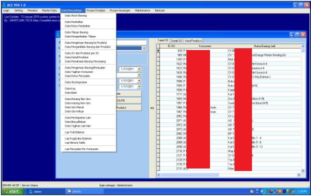 Merupakan project system management di CANDRA-OFFSET Surabaya. Project meliputi pembuatan keseluruhan sistem yang meliputi Penerimaan Sales Order, Konfirmasi Sales Order, Penerimaan Barang Kertas dan/atau tinta serta barang-barang penunjang lainnya dari konsumen, Proses percetakan dan pencatatan pemakaian bahan, Proses pengiriman barang hasil cetakan ke konsumen, Proses pengembalian barang sisa ke konsumen, dan proses penagihan. Program ini memiliki fasilitas juga untuk menangani berbagai macam transaksi yaitu penggunaan giro mundur, penghapusan hutang dengan piutang(karena ada beberapa client di perusahaan itu yang merupakan supplier bahan juga), transfer kas-bank/bank-bank, biaya dan pendapatan lain. Laporan yang dihasilkan meliputi Trial Balance, Neraca Saldo dan Mutasinya, Buku Besar, Neraca R/L, dan Neraca Akhir.