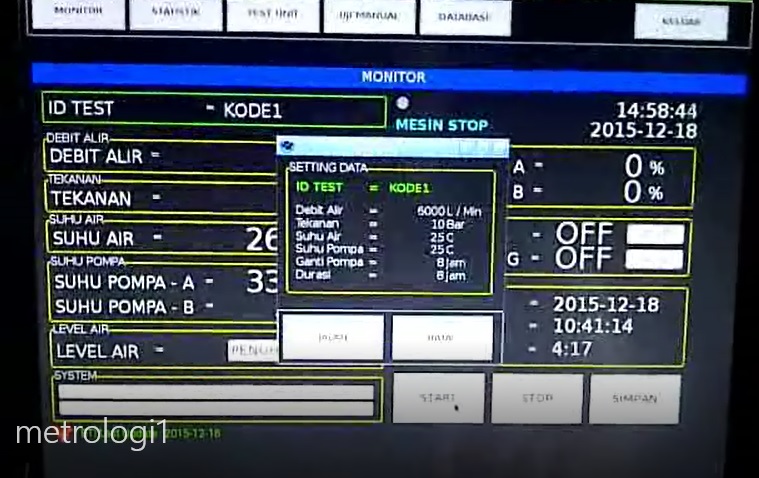 System ini memudahkan penguji di laboratorium untuk menyetel besaran yang sesuai antara tekanan, aliran air dan suhu pada saat pengujian.